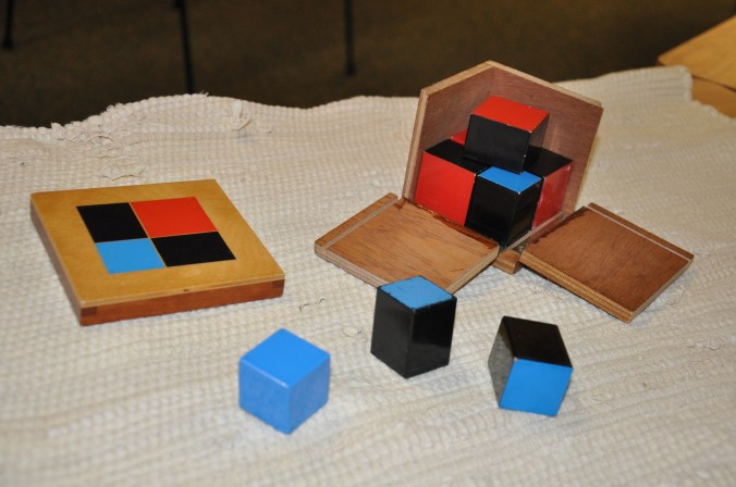What are these special materials? Traditional educators like to call them “manipulatives.” Montessori materials are just concrete representations of math concepts like place value, numeration, value, quantity, area, volume, operations, and so forth.